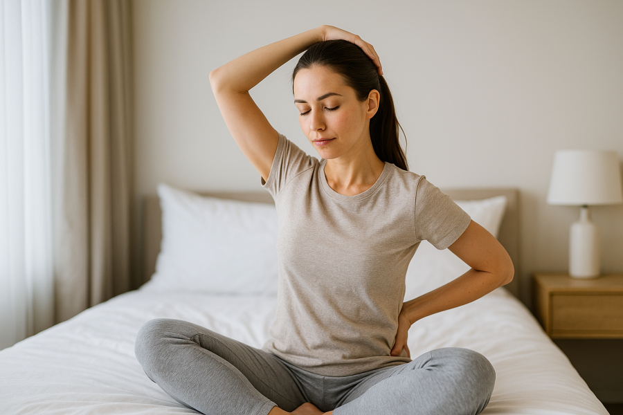 マットレス以外にも、寝る前の習慣が背中の状態に影響することがあるようです。軽いストレッチやヨガ、入浴で筋肉を温めてほぐしておくと、睡眠中のこわばりが和らぐ可能性があるとされています。特にパソコン作業が多い人や日中の活動で筋肉が固まりやすい人には効果的だと紹介されています。