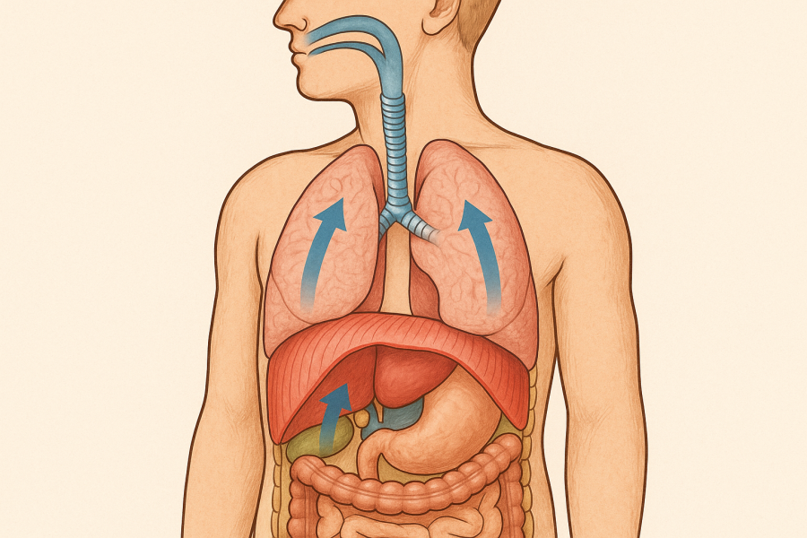 横隔膜の収縮と弛緩は、血液の流れにも関係していると言われています。息を吸うときに胸腔内圧が下がると、心臓へ血液が戻りやすくなります。これを静脈還流の促進と呼びます。つまり横隔膜の動きは、呼吸を通じて全身の循環を助けていると説明されています。運動時や長時間の座位でも、深い呼吸を意識することで血流のサポートにつながる可能性があると考えられています。