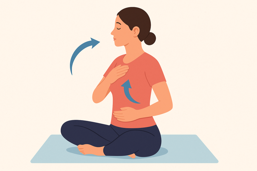 多くの人が無意識のうちに胸式呼吸に偏ってしまうことがあります。パソコン作業やスマートフォン操作で前かがみの姿勢が続くと、胸が圧迫されて呼吸が浅くなると指摘されています。そこで腹式呼吸を意識すると、横隔膜がしっかり働き、より効率的に酸素を取り込める可能性があると考えられています。